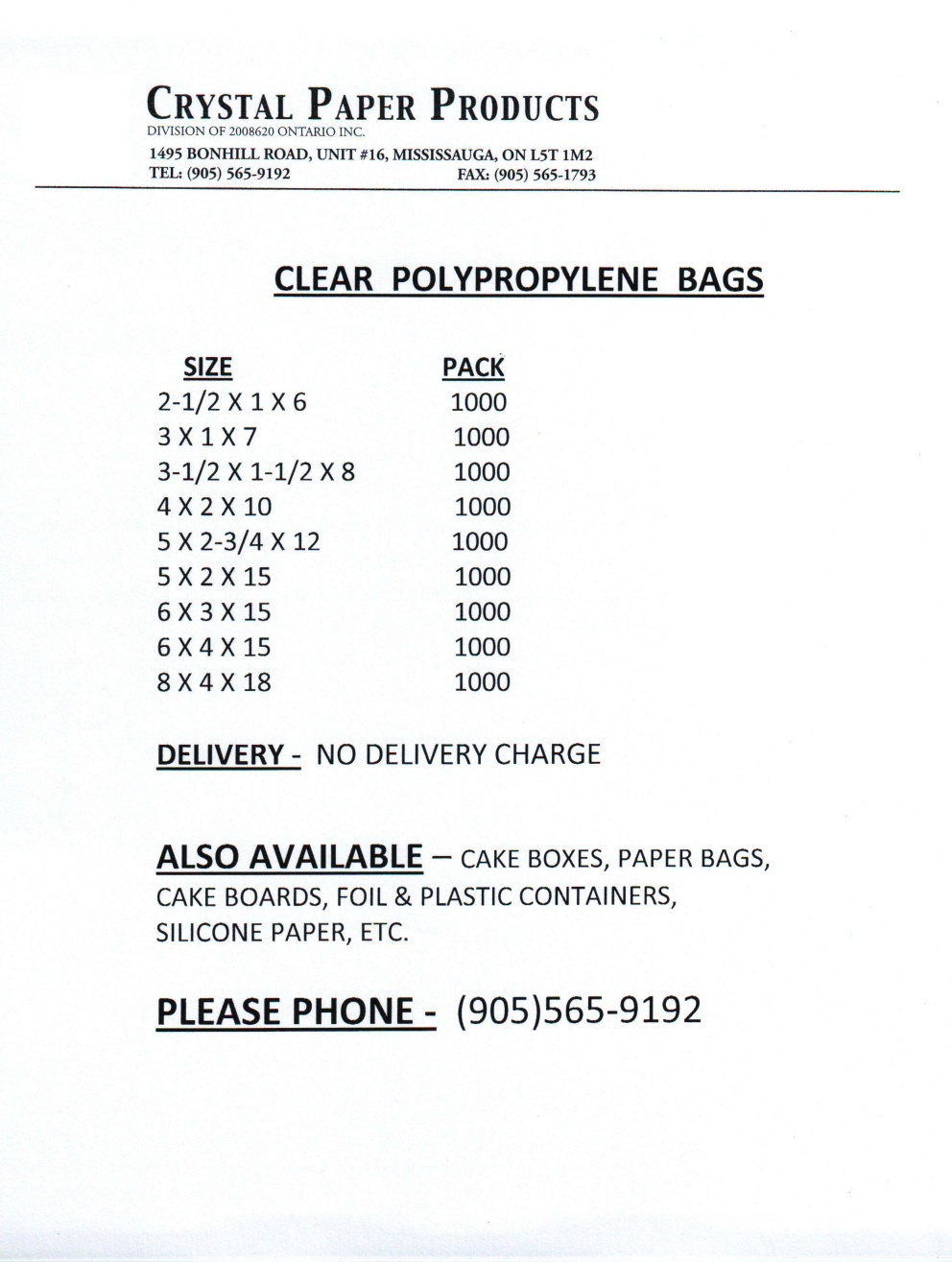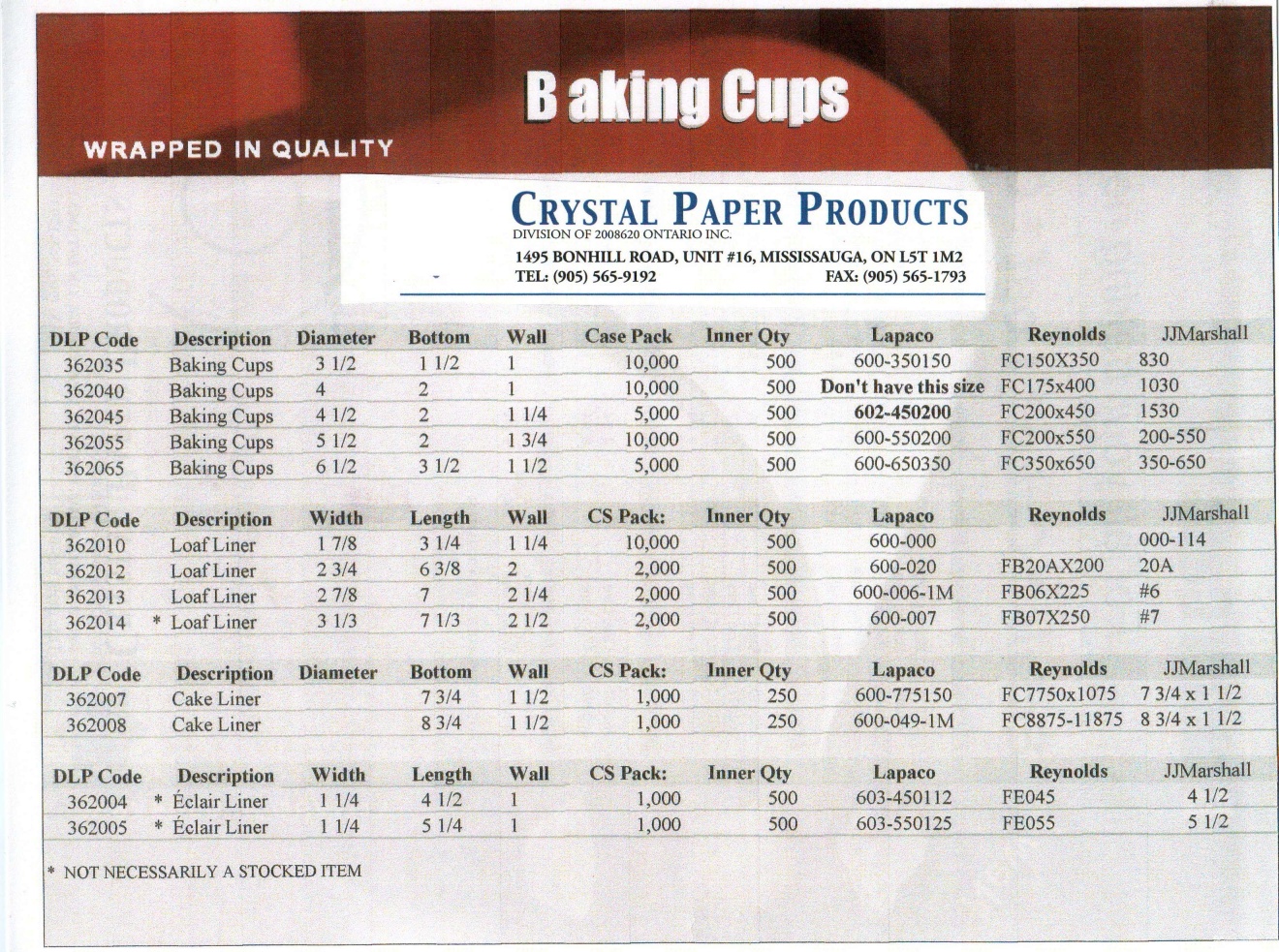 Here are some of the products we carry. This is by no means the full range of our products, so please contact us if you want to find out whether we carry a certain product, and we will try our best to satisfy your needs.